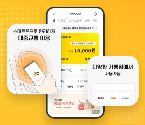 캐시비는 지난 2010년 12월에 출시한 로카모빌리티의 교통카드인데요, 티머니와 비교하여 다양한 디자인의 카드를 제공하고 있습니다.
