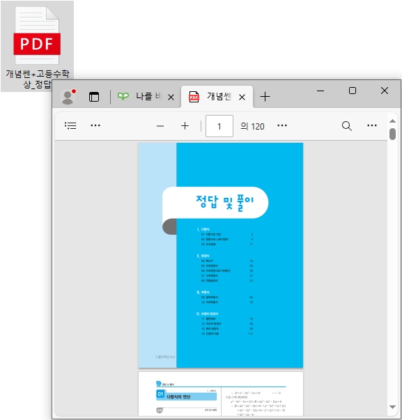 오늘은 개념쎈 고등수학 상 답지를 PDF파일로 다운받는 방법을 알아보도록 할텐데요, 온라인을 통하여 쉽게 찾아 다운받을 수 있습니다.