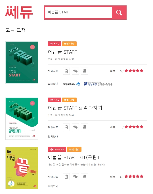쎄듀 홈페이지(쎄듀 (cedubook.com))에 접속하여 검색창에 [어법끝 START] 정도로 키워드를 잡아서 검색하시면 [고등교재] 영역에서 원하는 교재를 찾을 수 있습니다.