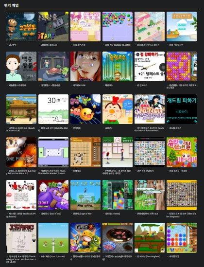 또한, 검색창도 있기때문에 게임 제목을 알고있는 경우라면 검색어를 입력하여 찾아보시기 바랍니다. 그럼 재미있게 플레이 해보시기 바라면서 이만 포스팅을 마치겠습니다.