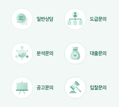 솔비드는 상담요원이 상주하여 접수된 요청사항에 대해서 신속하고 정확하게 답변드리기 위해 노력하고 있습니다. 일반상담, 도급문의, 분석문의, 대출문의, 공고문의, 입찰문의를 하실 수 있어요.