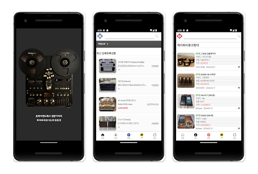 모바일 앱을 통해서도 매물 검색과 거래 서비스를 지원하고 있는데요, 오디오 관련 리뷰와 제품 안내 같은 정보성 콘텐츠도 제공하여 이용자들은 폭넓은 오디오 문화를 접할 수 있습니다.