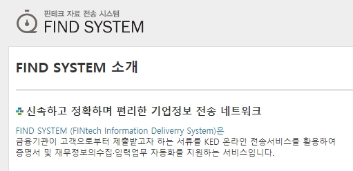 신속하고 정확하며 편리한 기업정보 전송 네트워크라고 하는데요, 파인드시스템은 핀테크 인포메이션 딜리버리 시스템을 의미하며 금융기관이