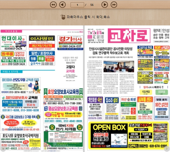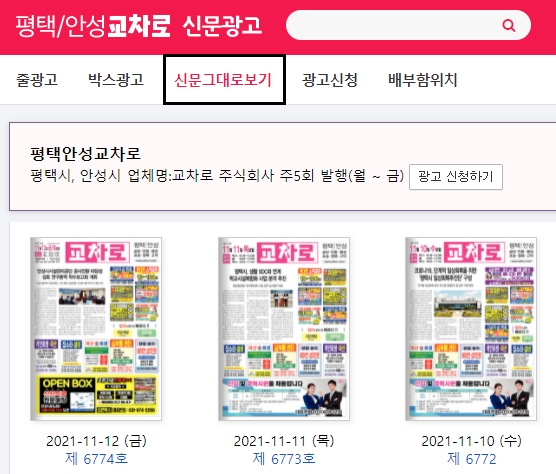 안성지역과 인접해있어서 그런지 평택과 함께 교차로가 묶여있더군요. 이번시간에는 안성 및 평택 교차로 신문그대로보기 방법에 대하여 간단히 안내드리려고 하는데요, 길거리에 나가서 종이신문을 무료로 가져올수도 있지만 집에서 컴퓨터로 보는것도 가능합니다.