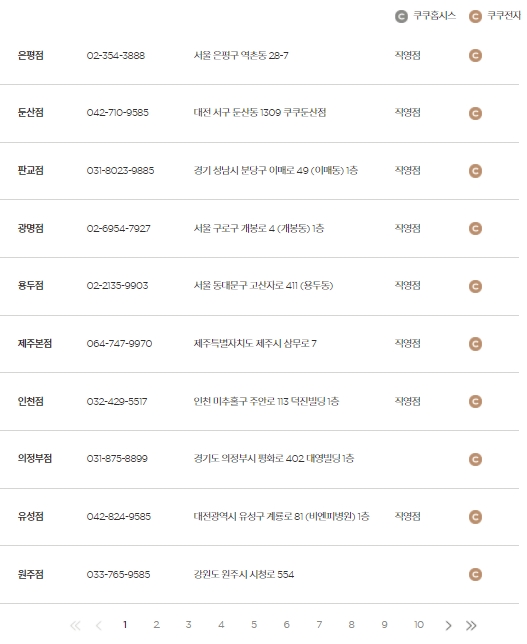 지점이름과 전화번호 그리고 주소정보를 보여줍니다. 전국에 나름 여러군데에 지점이 있기때문에 웬만하면 차량으로 30분 거리 내에 있을거라고 생각합니다. 그럼 오늘의 포스팅은 여기까지만 하도록 하구요, 쿠쿠제품을 수리하는데 있어서 도움이 되셨으면 좋겠네요.
