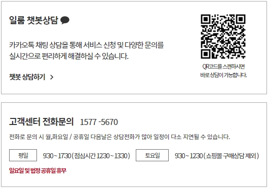 고객센터 문의 전화번호 : 1577-5670