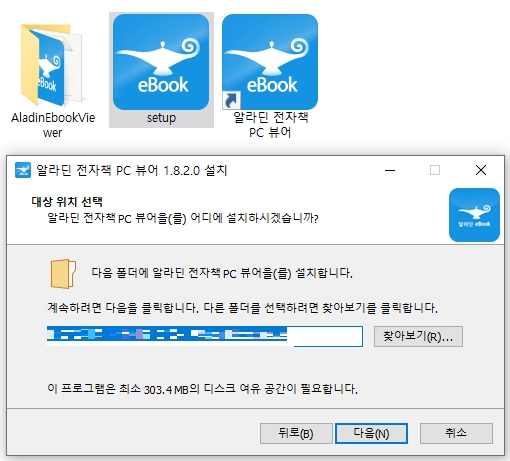 저는 윈도우 버전의 프로그램을 다운받아 설치해보았는데요, setup파일을 실행하여 인스톨 작업을 진행할 수 있습니다. 필요로 하는 디스크 여유공간은 303.4MB인데, 제가 생각했던 것보다는 용량이 크더군요.