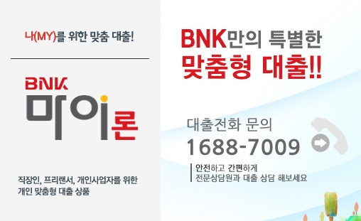 두가지의 상품이 있는데요, BNK 마이론은 더 많은 혜택을 드리는 간편한 바로 서비스 론이고, BNK 마이론 썸(SUM)은 은행 연계 고객을 위한 One-Stop 전용대출입니다.